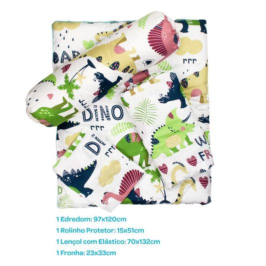 Kit Berço 4 Peças Lençol, Protetor, Fronha E Edredom Pimpolho