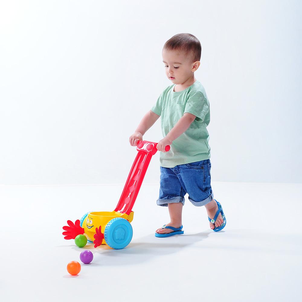 O Andador musical cata bolas Pimpolho é um brinquedo que estimula os primeiros passos da criança tornando o seu desenvolvimento mais divertido. Ao empurrá-lo ele cata as bolas do chão, emitindo sons divertidos. Treinamento de dedos, auditivo, visual, membros, senso de toque. Auxilia no desenvolvimento da criança em geral. Possue regulagem de altura, botão liga e desliga, manual de montagem na caixa. PILHAS 2AA. Contém: base divertida, alça e 3 bolinhas coloridas sortidas.