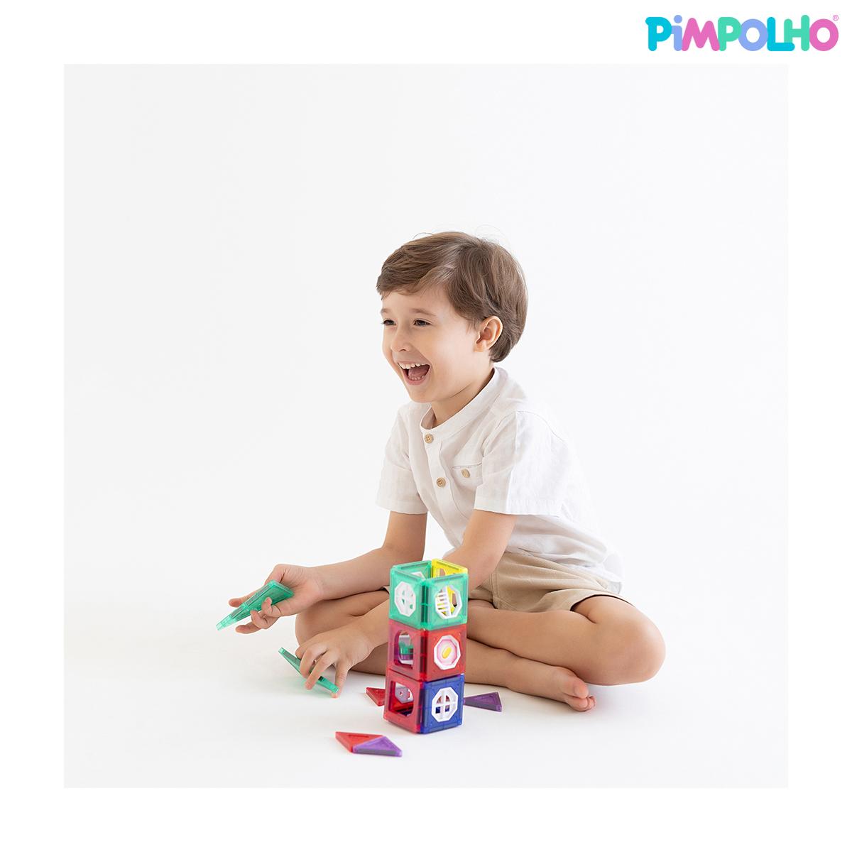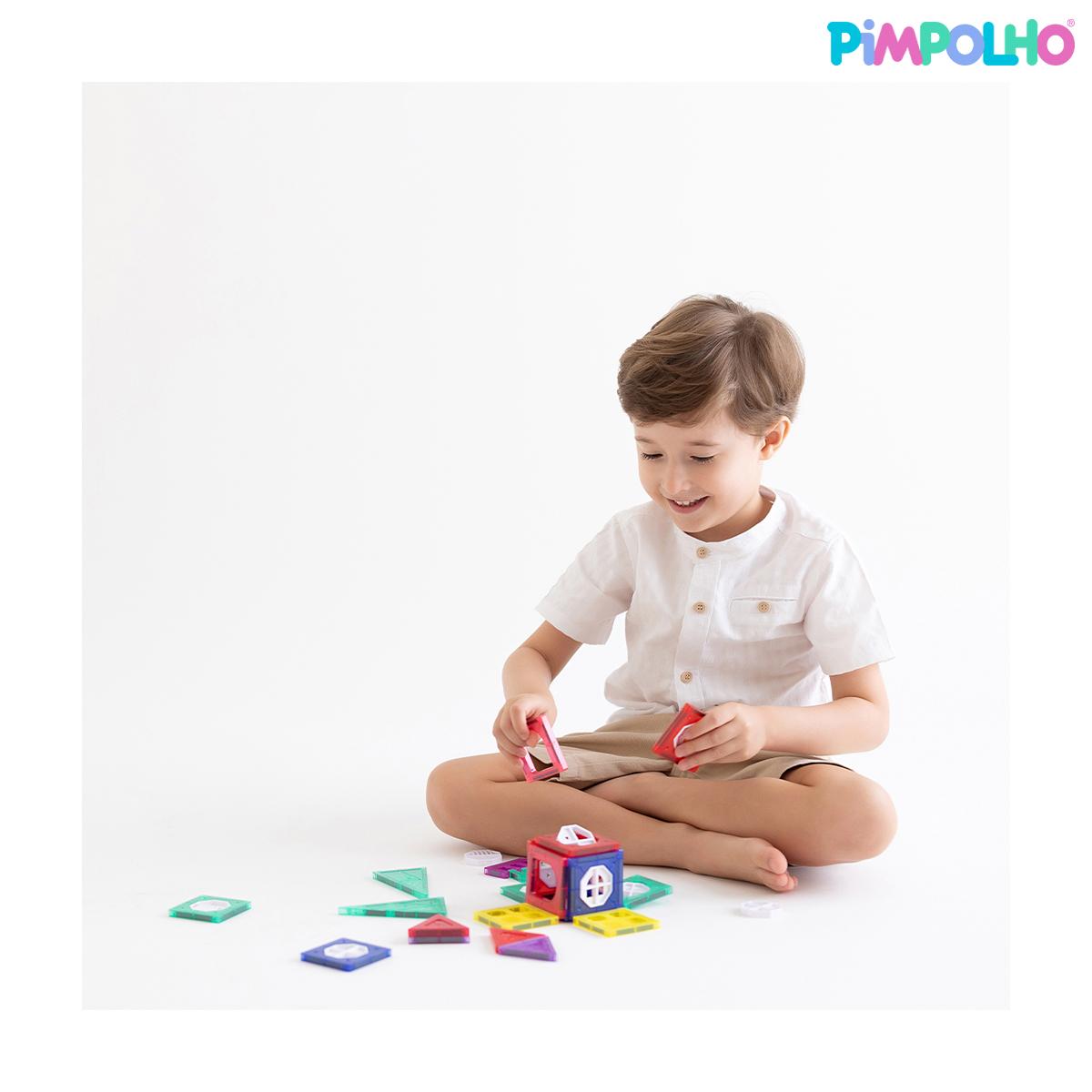 Os Blocos Magnéticos 34 Peças Pimpolho são brinquedos educativos que transformam a hora da brincadeira em um momento de aprendizado, criatividade e desenvolvimento motor.