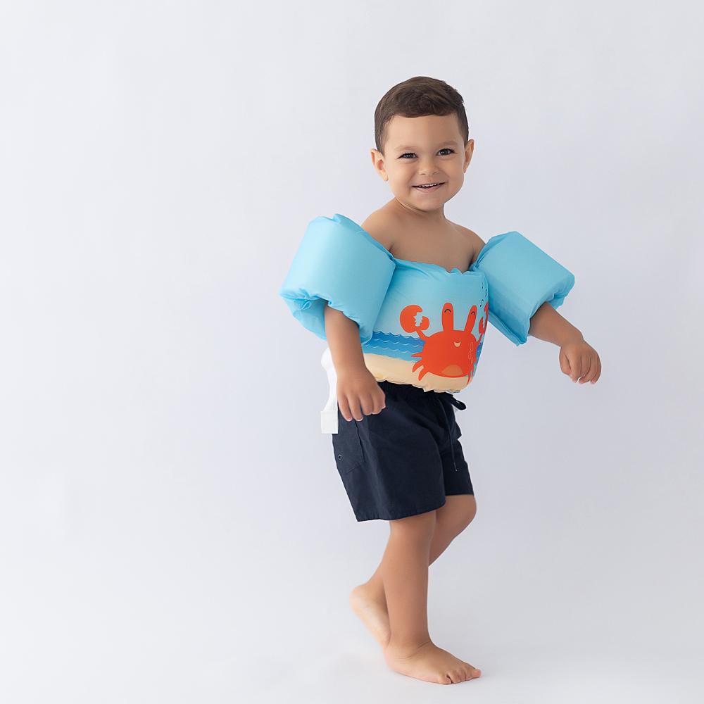 Chegaram as novas boias infantis da Pimpolho. Aprender a nadar nunca foi tão divertido! A Boia Infantil da Pimpolho auxilia na flutuação enquanto a criança se aventura na água com segurança, seu formato anatômico permite a livre movimentação da criança. Possui fecho ajustável nas costas, não é necessário inflar, basta seguir as instruções na parte de trás da boia e ela já está pronta para o uso. Indicada para crianças de até 25 kg.