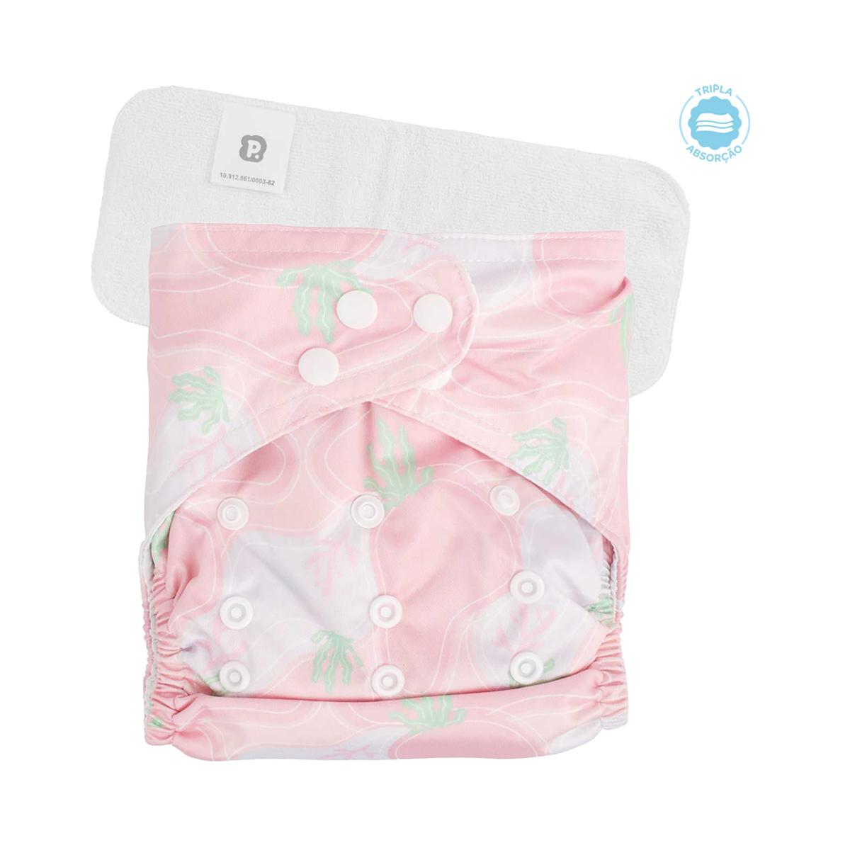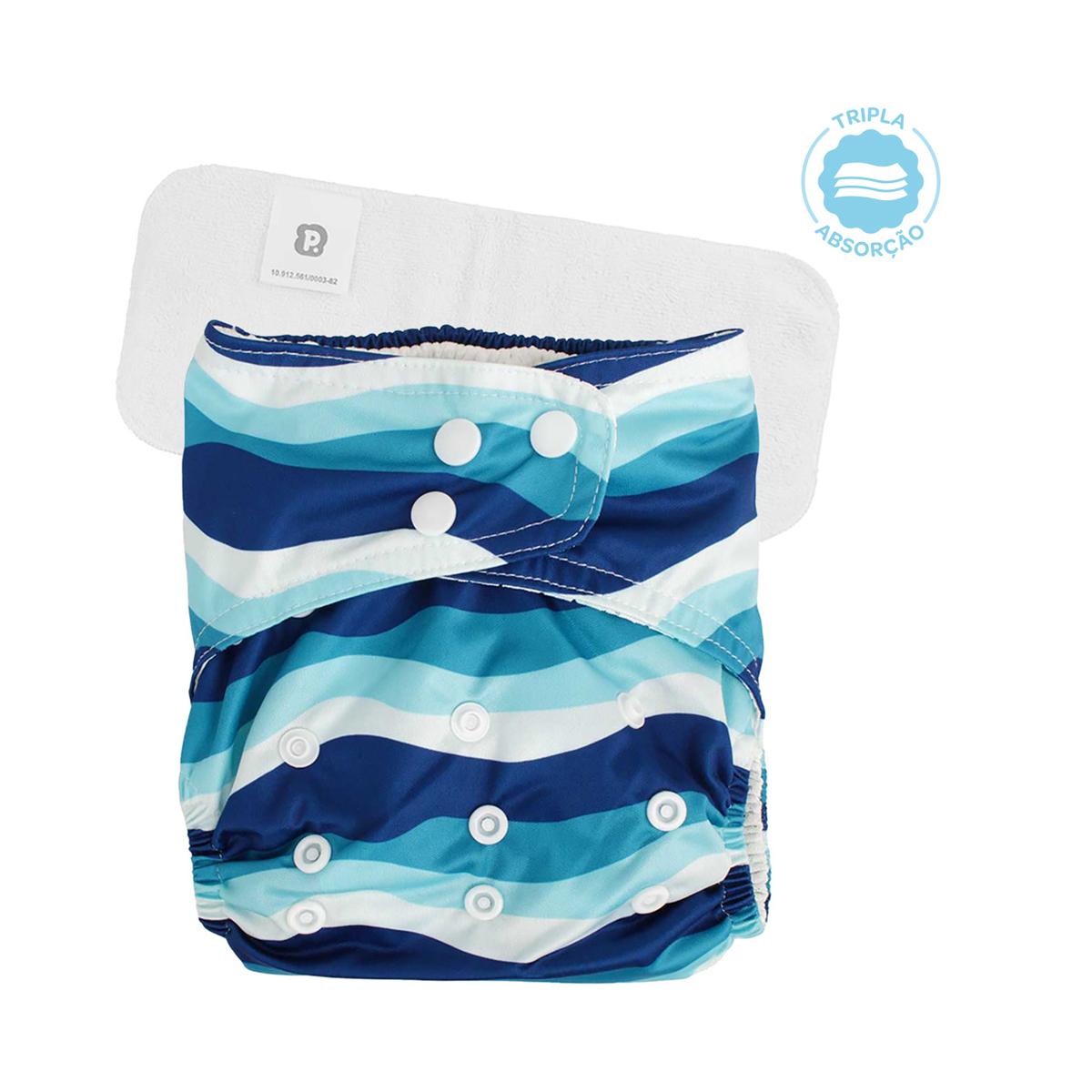 Vem com absorvente antialérgico, que pode ser usado direto na pele ou no bolso da fralda, mantendo tudo sequinho por mais tempo.