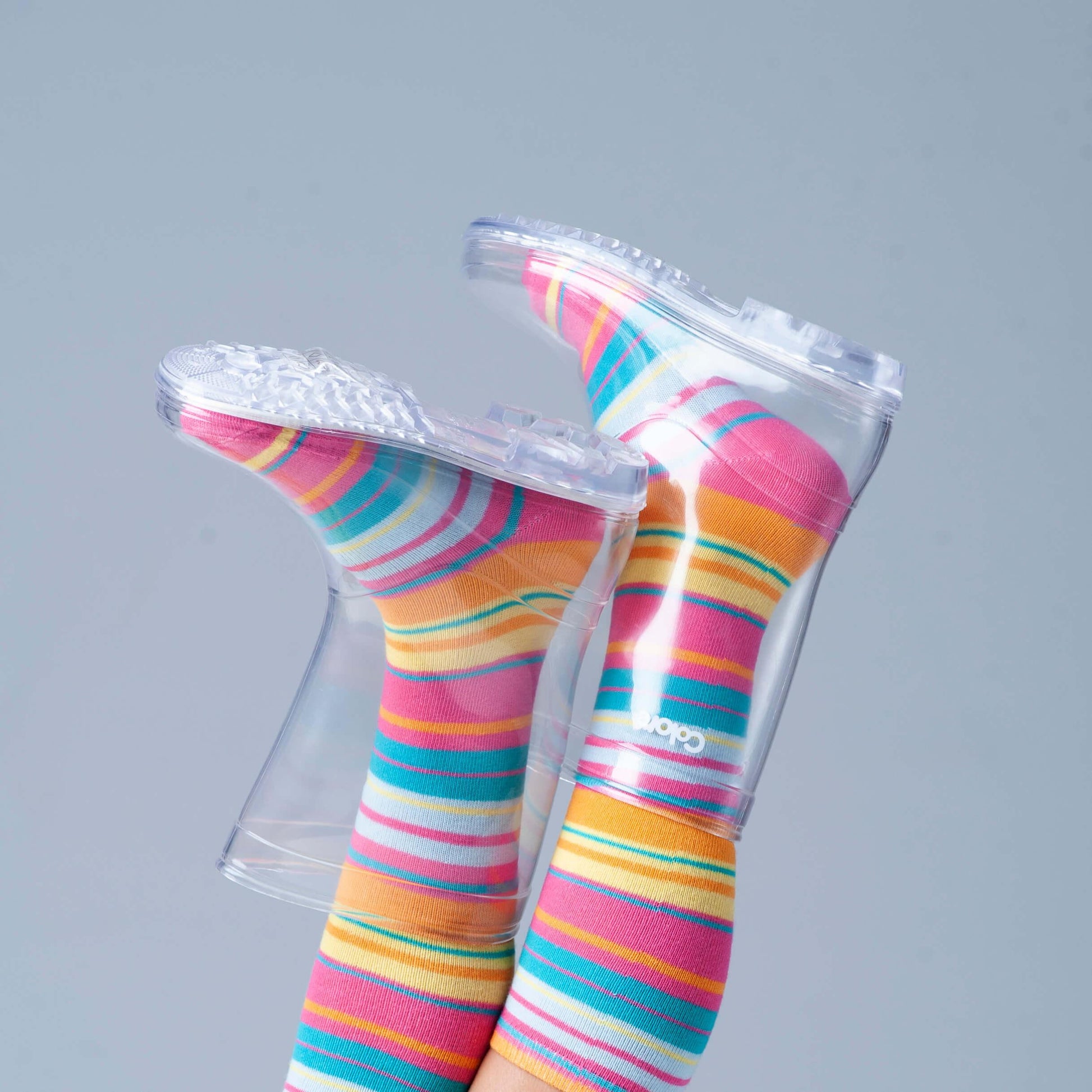 Galocha transparente ideal para dias de chuva. Feito com material confortável e resistente, é ideal para usar com meias coloridas.
