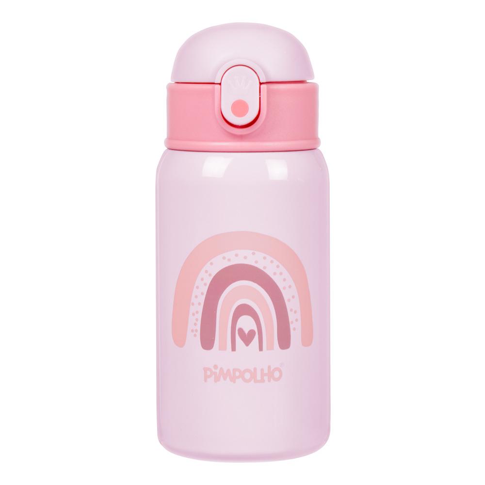 A Garrafa térmica com canudo Pimpolho tem capacidade de 400ml e mantém as bebidas quentes ou geladas por até 5 horas. Sua tampa com botão de pressão é prática e higiênica, possui superfície transparente que permite enxergar o conteúdo interno sem necessidade de desenroscar a mesma. A garrafa é confeccionada em aço inoxidável de alta qualidade, não enferruja ou entorta com o uso regular.