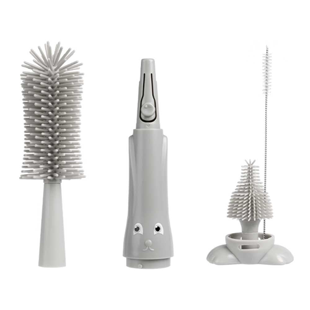 O kit higienizador de mamadeira de silicone da Pimpolho é macio e ideal para limpar mamadeiras, bicos, canudos e diversos outros utensílios. Possui 3 escovas acopladas que garantem a limpeza completa dos itens do seu bebê, sendo a maior escova, com cerdas de silicone, ideal para mamadeiras e copos, o silicone é fácil de secar, não gruda comida e não tem odor. A escova de silicone menor é ideal para lavar bicos de mamadeira, tampas de copos e entradas de garrafas. Já a escovinha de inóx que possui cerdas de nylon foi feita para limpar canudos e entradasa bem estreitas. Após a limpeza é só montar o kit e deixar em uma superficie que ele secará rapidamente. Alem de multifuncional o kit possui design decorativo, suporte de base permite que a escova fique em pé sem a necessidade de pendurar.