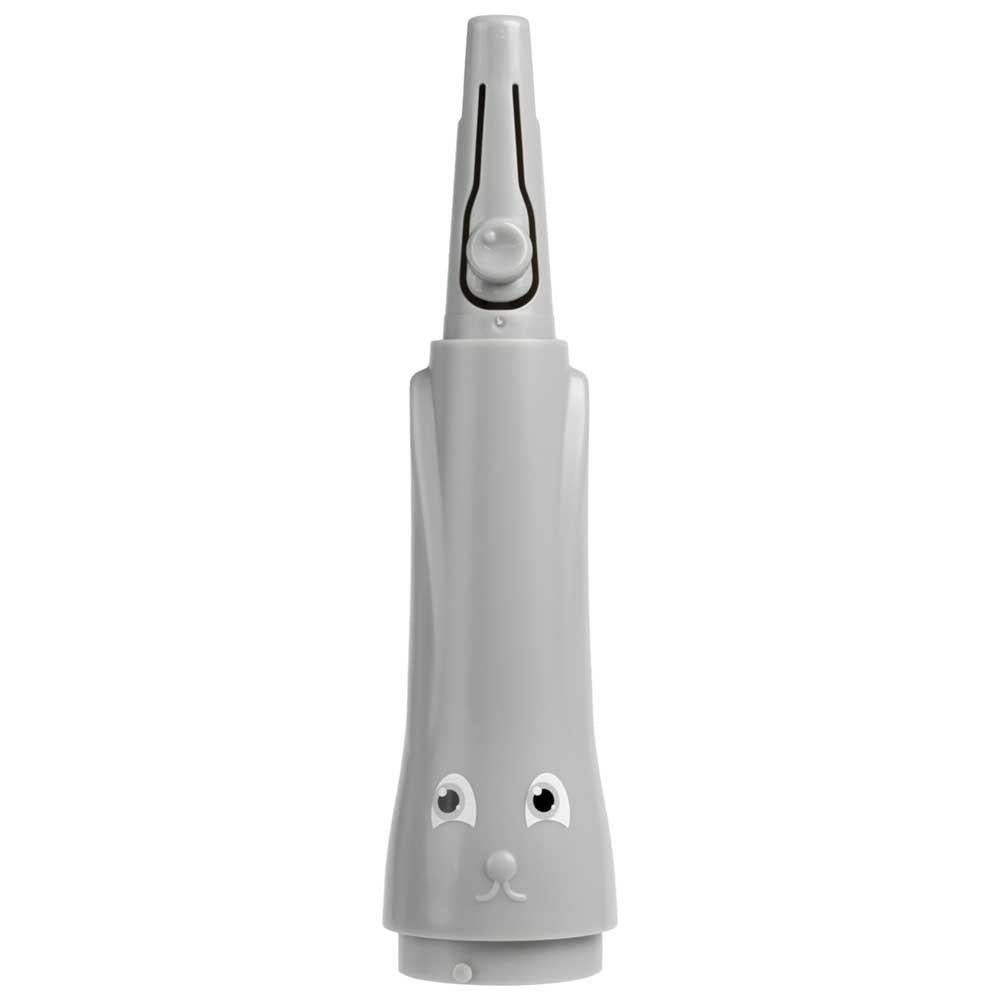 Para acessar o limpador de bicos e canudos, gire a base do higienizador no sentido anti-horário e puxe liberando o compartimento.