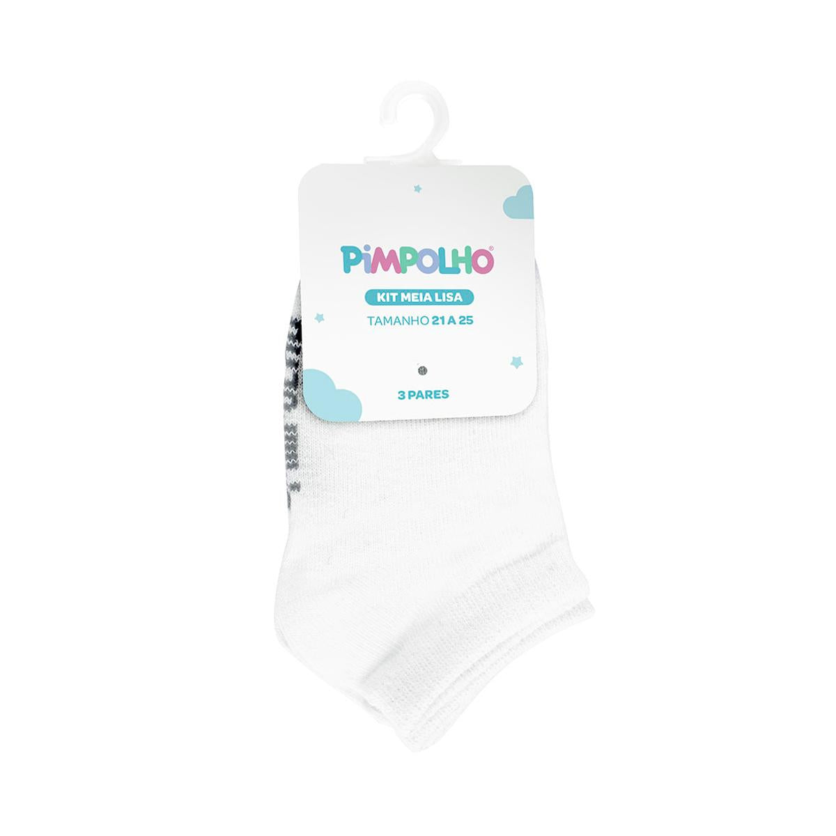 Com design liso e clássico na cor branca, esse kit é versátil e fácil de combinar com qualquer uniforme ou roupa infantil. O cano baixo proporciona ajuste confortável e liberdade de movimento, sendo uma ótima escolha para o uso diário.