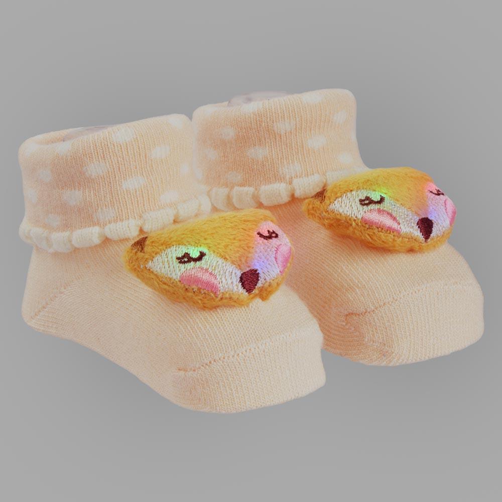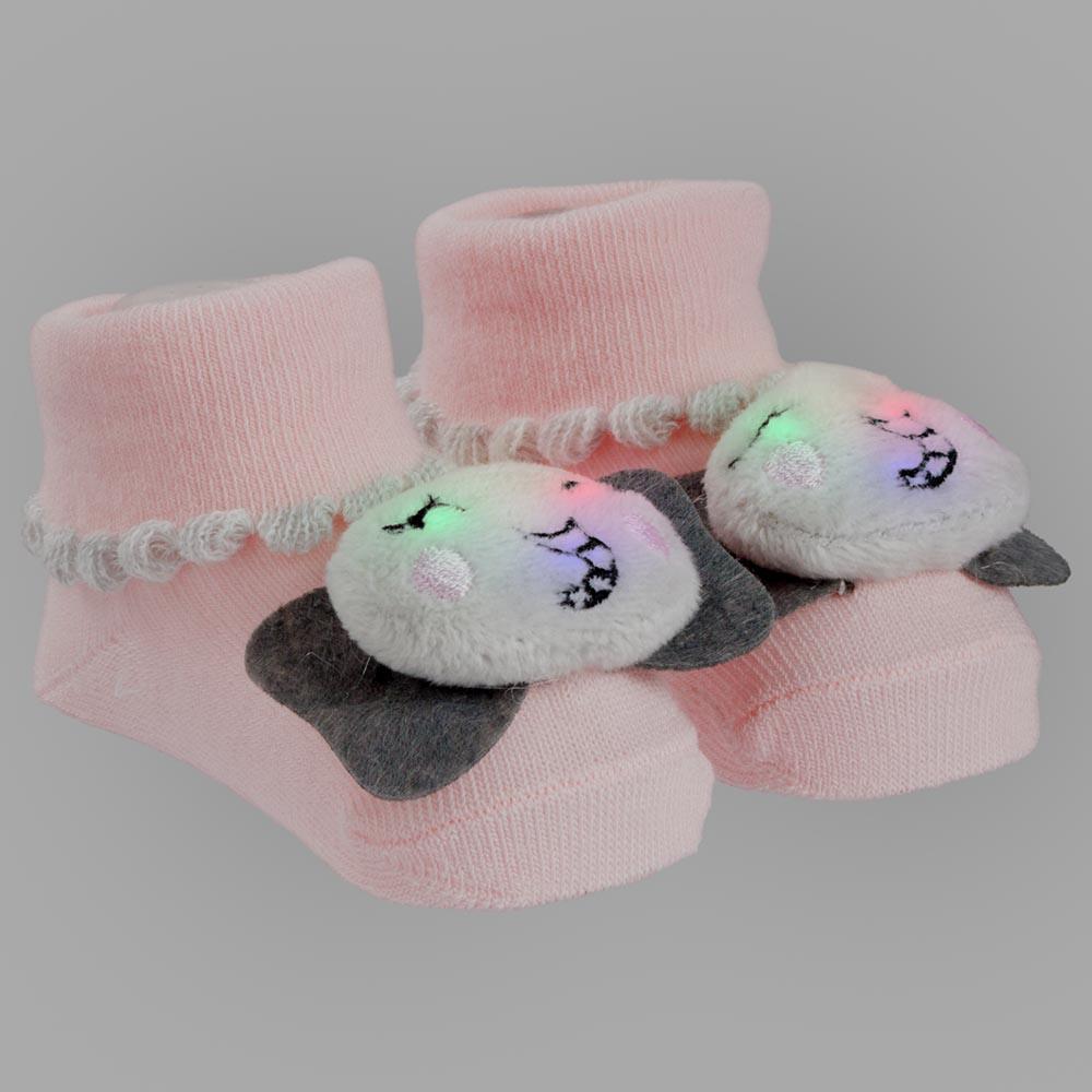 A meia bichinho led é macia e oferece o conforto ideal, vai proteger e manter os pezinhos do bebê sempre quentinhos. Ajuda o bebê no desenvolvimento da criatividade, imaginação, cognição e motricidade com suas luzes, cores e texturas. Durabilidade do led 100.000 ciclos. Para ativar a luz led é necessário um leve toque no bichinho. LEDs encapsulados resistentes à água. Pode ir à máquina de lavar.