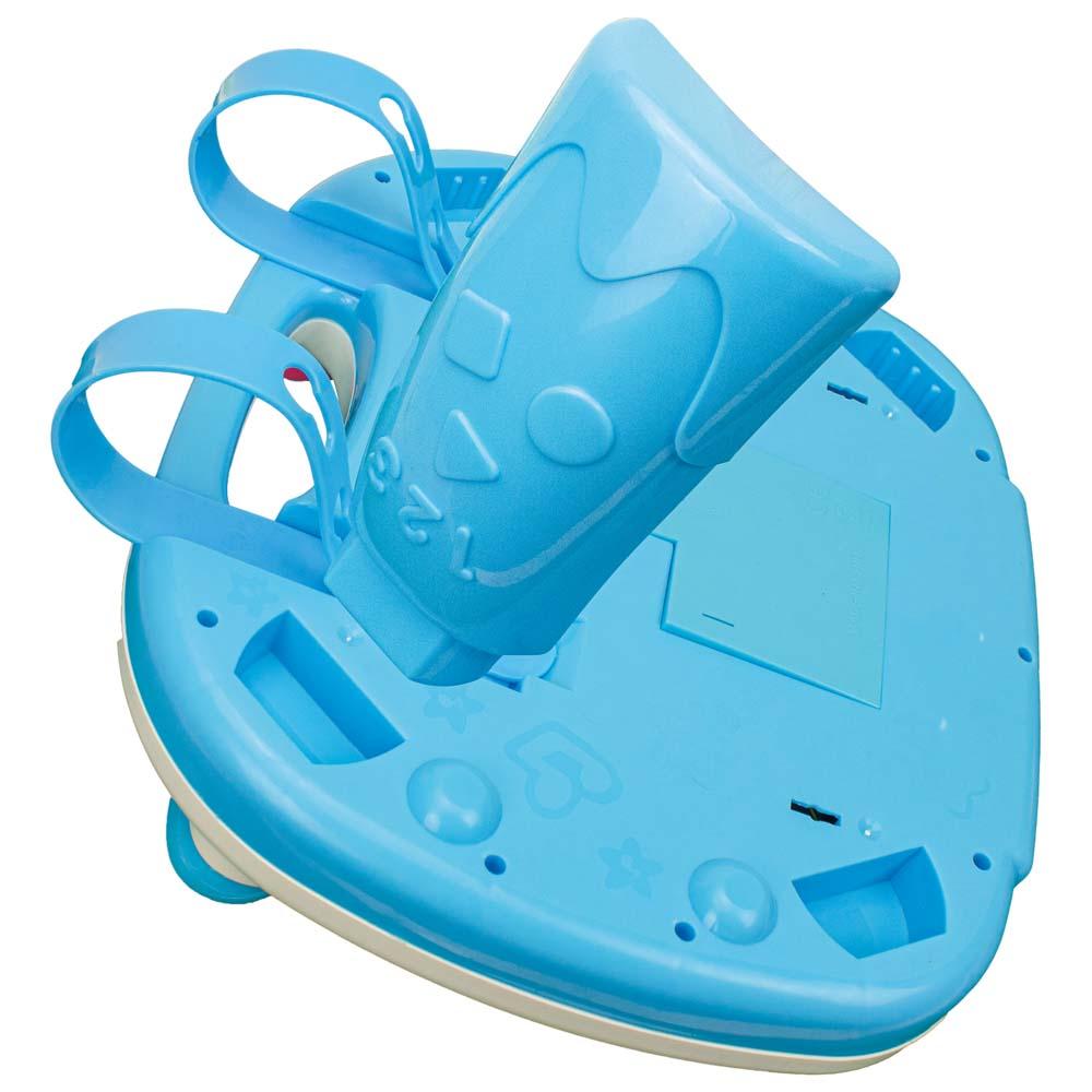 É preciso colocar pilhas 3 AA, encaixar os pés na mesa que vem separados na embalagem ou prender a mesa em alguma superfície com as tiras que também acompanham a embalagem antes de deixar a criança brincar. O brinquedo possui botão liga e desliga. Espelho, luzes, efeitos sonoros de carro, articulações e botões divertidos.