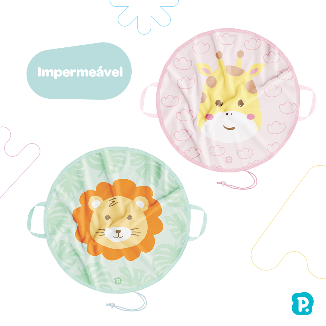 O tapete impermeável para introdução alimentar da Pimpolho é um ótimo aliado para a higiene do ambiente e serve também como pega brinquedos, com seu diâmetro de 1,05 metros e tecido impermeável, é ideal para deixar o bebê se alimentar a vontade, brincar ou até deixar em baixo da cadeira de alimentação. Após as refeições é só puxar a cordinha que ele vira uma bolsa que recolhe a sujeira, também possui alça para carregar e os desenhos combinam com outros itens da nossa coleção de alimentação.