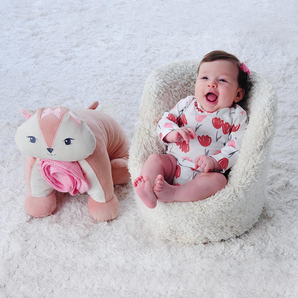 O Travesseiro com manta de pelúcia da Pimpolho traz mais afeto e conforto para a hora do soninho! Seu formato de bichinho esquilo é divertido e aconchegante. Ideal para ser transportado em viagens ou decorar o quarto, são a companhia perfeita para os pequenos. Estimula o desenvolvimento visual, tátil, criativo e motor. Travesseiro: 0,36cm x 0,54cm. Manta: 0,75cm x 0,75cm/ Peso: 0,148g.